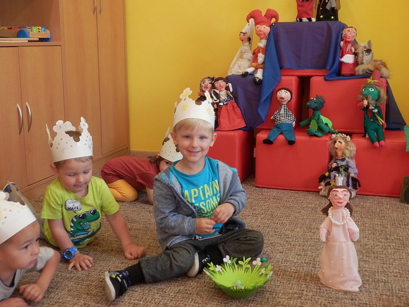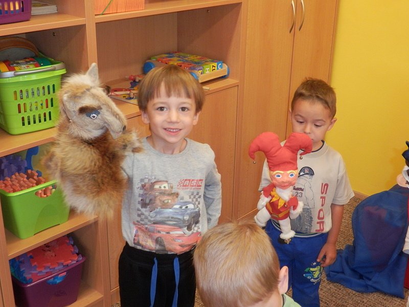 Předposlední květnový týden v mateřském centru se nesl v pohádkovém duchu. Provázely nás čtyři známé lidové pohádky: O perníkové chaloupce, Červená Karkulka, Hrnečku vař a O Koblížkovi.