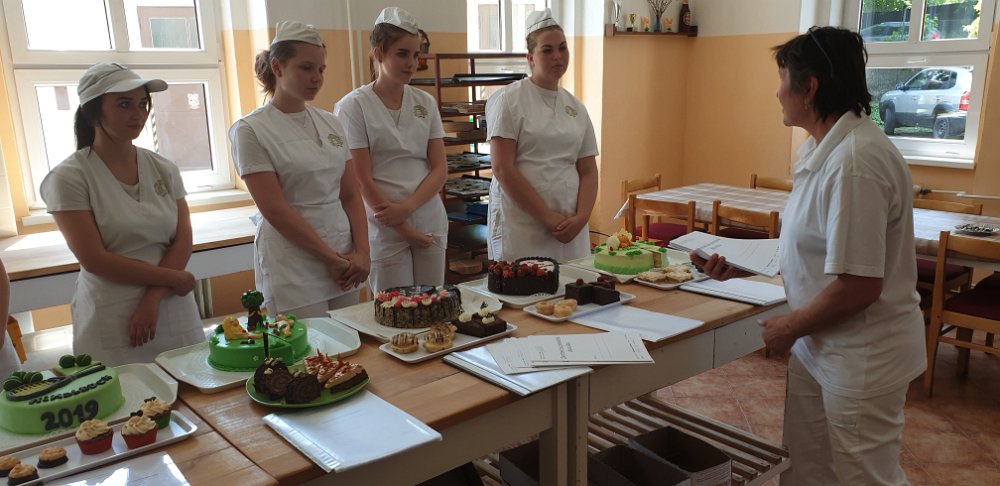 Ve středu 5. 6. 2019 proběhlo vyhodnocení praktických závěrečných zkoušek u první skupiny žákyň oboru Cukrář.