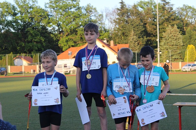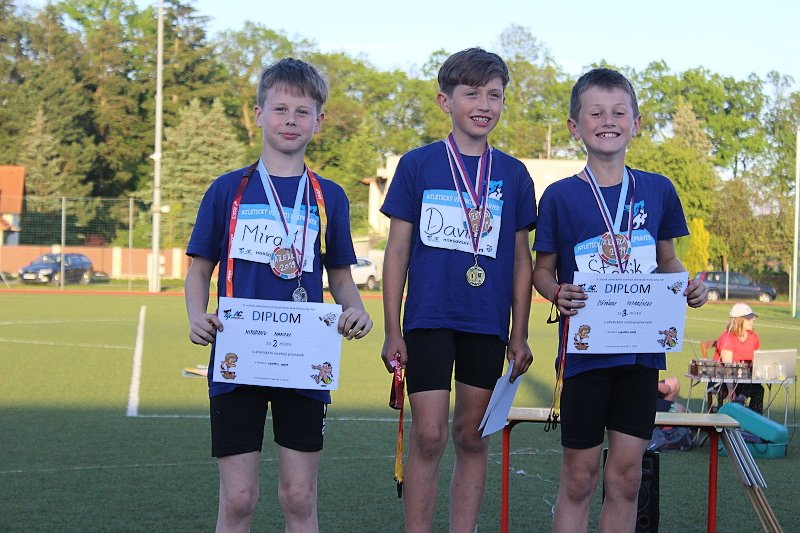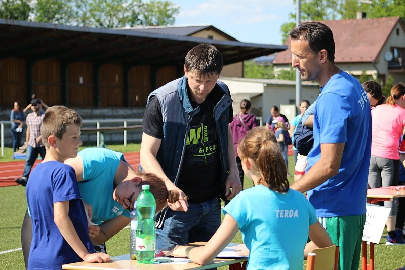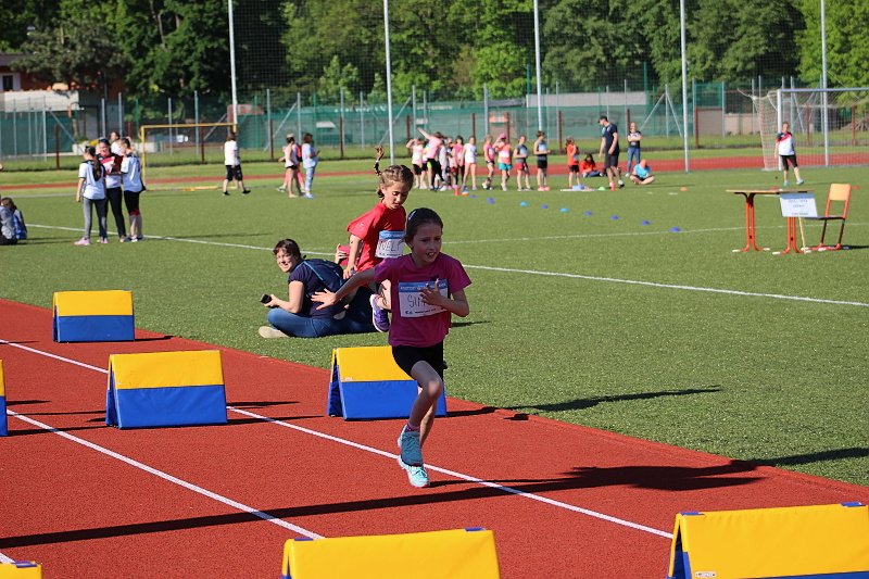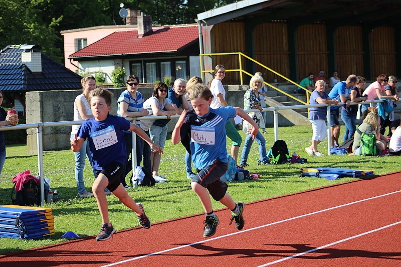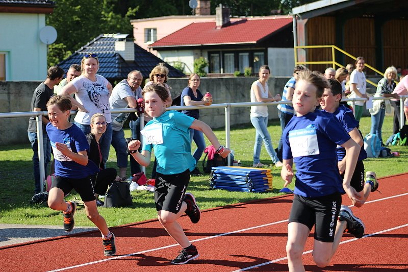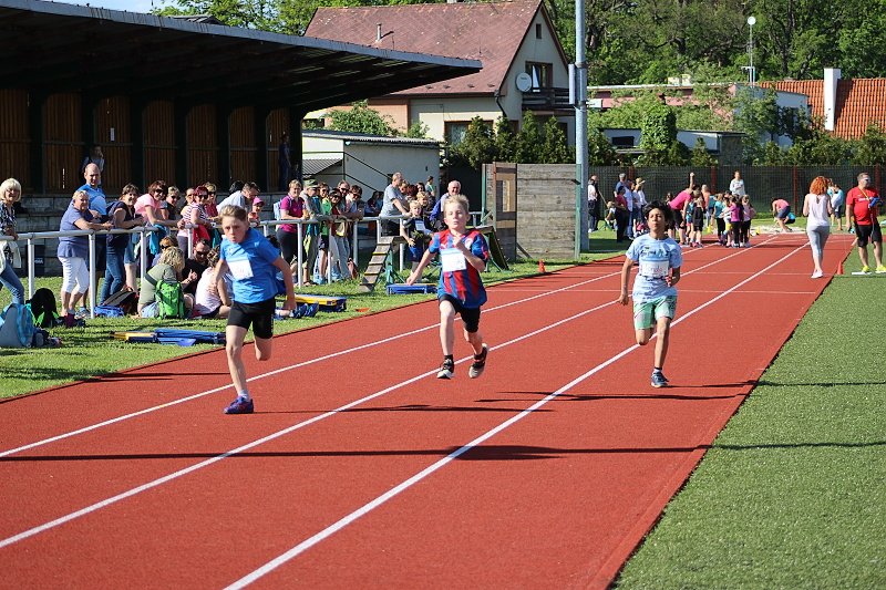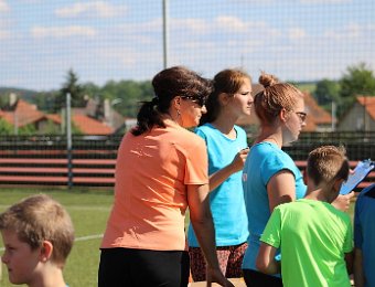 Již potřetí uspořádali učitelé tělesné výchovy Mgr. František Cihlář a Mgr. Věra Blacká s pomocí Mgr. Zdeňka Šilhánka na konci května atletické závody pro děti mladšího školního věku.