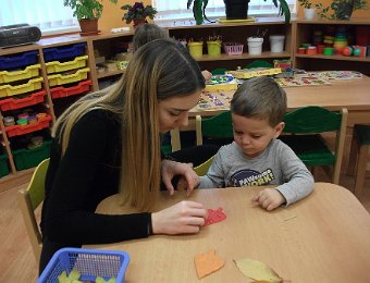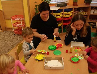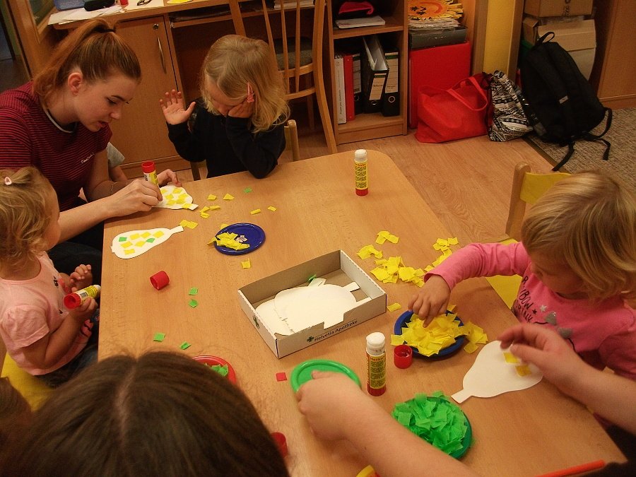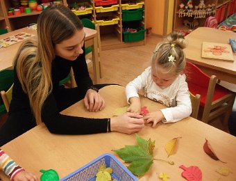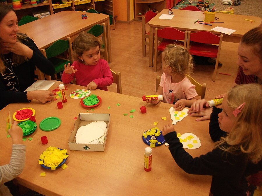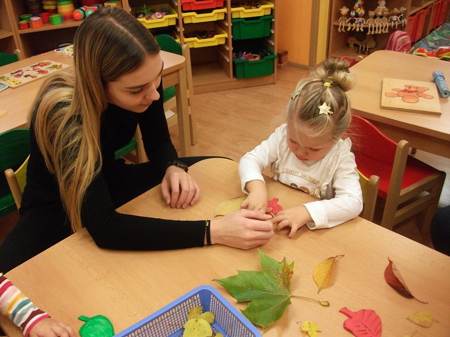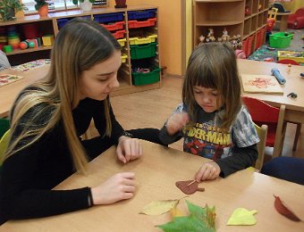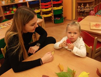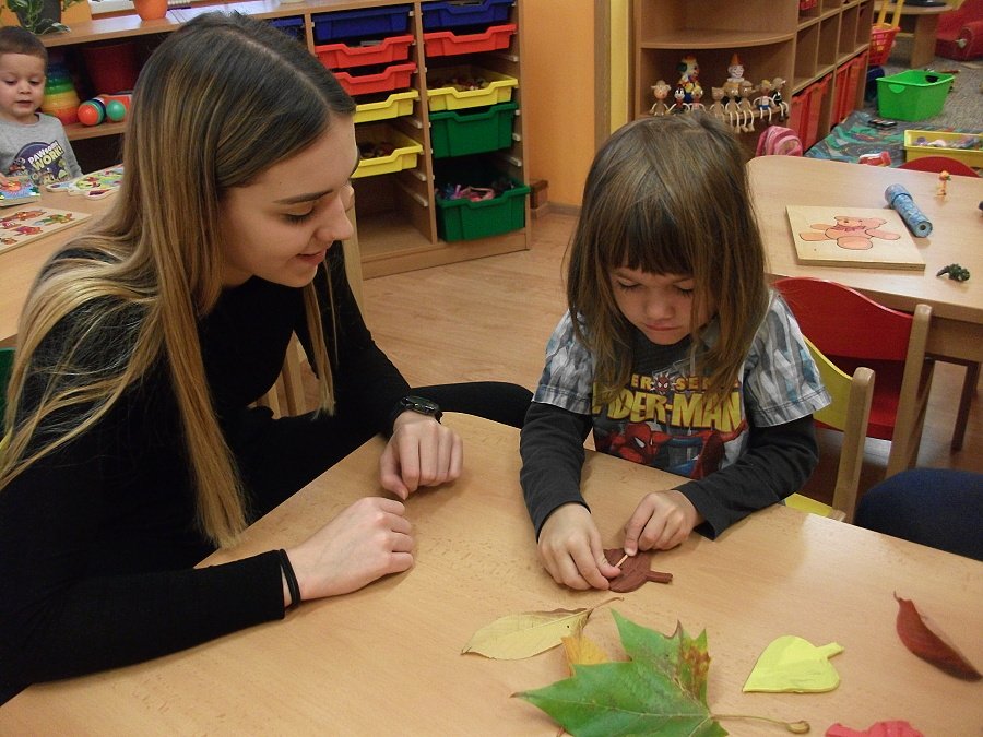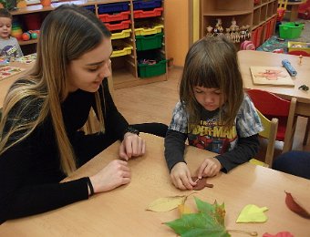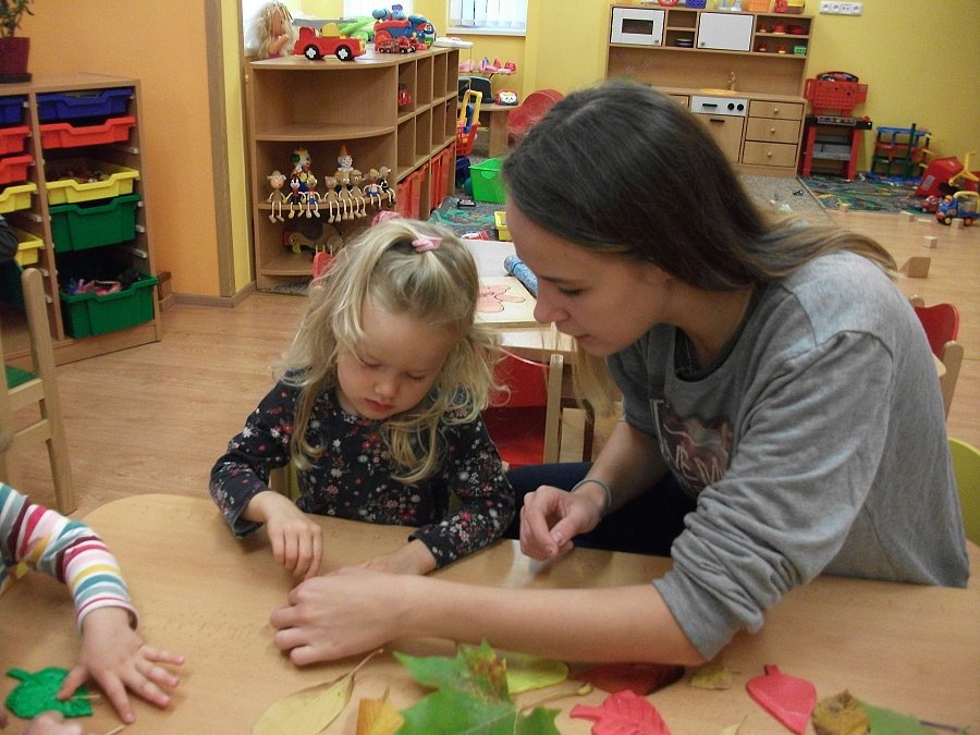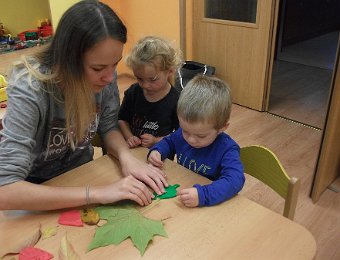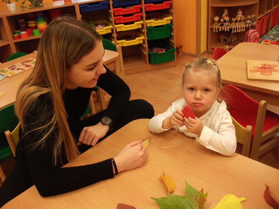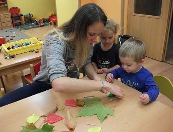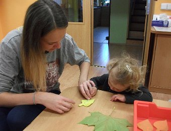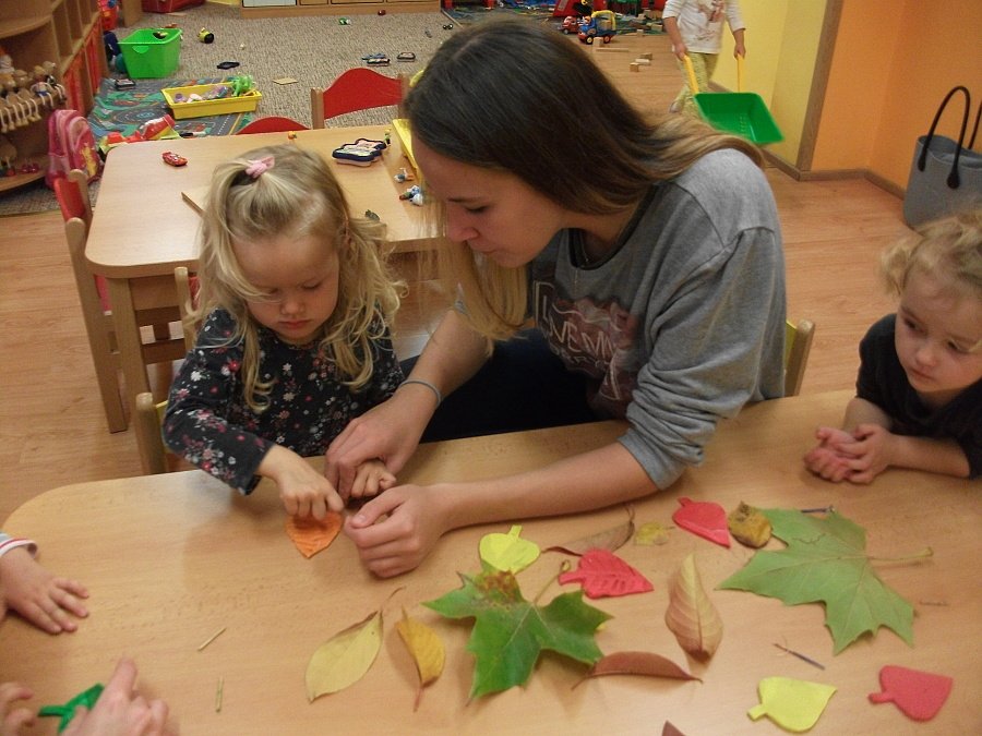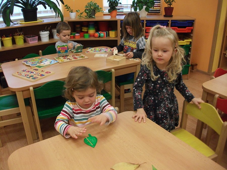 Pestře zbarvený podzim přímo vybízí k radostným hrám: pobíhali jsme ve spadaném suchém listí a poslouchali, jak krásně šustí, vyhazovali jsme listy do vzduchu a pozorovali, jak padá, promnuli jsme jej v prstech a čichali, jak pěkně voní, ze sesbíraného listí jsme si vytvořili barevné kytice apod. Z nejkrásnějších lístků jsme si udělali výstavku, pozorovali rozdíly nejen v barvách, ale i ve tvarech a velikostech, následovalo otiskování na větvičky stromu a nakonec jsme lístky tvořili z modelíny.