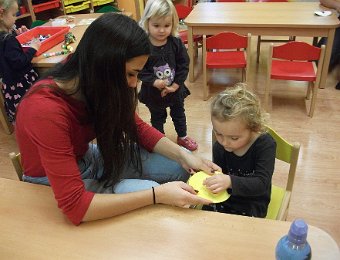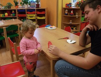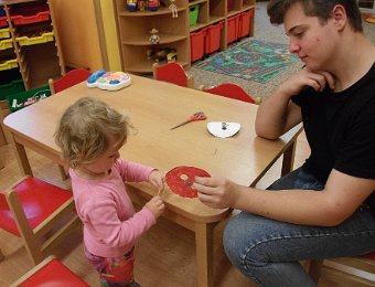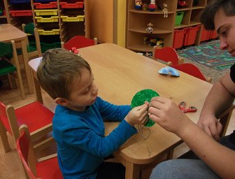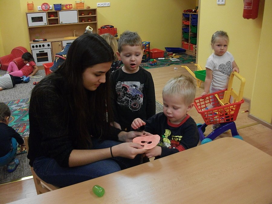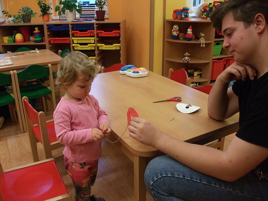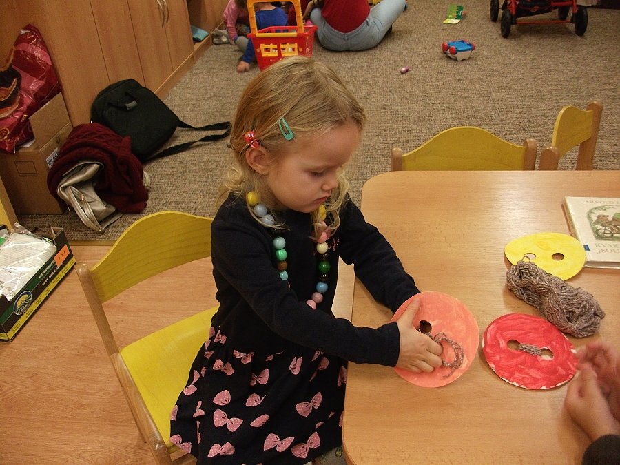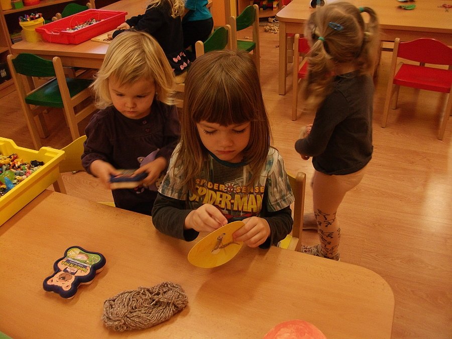 Už začala opravdová zima, hodně se ochladilo a tak jsme se začali více a tepleji oblékat. Aby nám bylo teplo, vyrobili jsme si palčáky a čepice a aby oblečení drželo zapnuté, přišili jsme i “Maxiknoflíky“