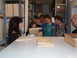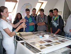 a restaurátorského ateliéru. Nejprve si všichni prohlédli prostory Státního okresního archivu Domažlice, kde je uloženo téměř 1800 fondů, tj. souborů písemností, které představují cca 3 000 běžných metrů. Maximální péče o archiválie je zajištěna udržováním optimálního mikroklimatu v místnostech. V tzv. badatelně byly vystaveny dvě listiny z doby Karla IV. V první z roku 1363 povoluje císař konat ve městě Domažlicích výroční trh a třídenní dobytčí trh. Ve druhé listině z roku 1375 obdrželi Horšovskotýnští právo na výběr cla a na užití výnosu cla k vydláždění města. V poslední části prohlídky se studenti seznámili s konzervační a restaurátorskou dílnou. Pracoviště je zaměřeno především na konzervaci a restauraci ručního papíru, ošetřování běžného aktového materiálu a konzervaci a restauraci historické vazby, pergamenů a pečetí. Exkurze v SOkA Domažlice byla velmi poutavá. Studenti získali internetovou adresu archivu www. portafontium.cz a odcházeli poučeni o poznatky, jak nejlépe uchovávat archiválie. |