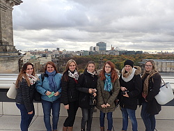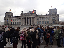 Ve dnech 02. - 03. 11. 2016 navštívilo 51 studentek z naší školy hlavní město Německa. Již po několikáté jsme využili služeb cestovní kanceláře PRO Travel CK s.r.o. Nejenže se profesionálně postarala o bezpečnou cestu tam i zpět, nýbrž pro nás zajistila fundovaného a trpělivého průvodce. Po šestihodinové cestě autobusem jsme v poledních hodinách dojeli k budově Říšského sněmu. Zde (po podrobné osobní kontrole) jsme mohli shlédnout město ze skleněné kopule na budově. Poté jsme si prohlédli památník věnovaný lidem, kteří byli při pokusu o útěk přes berlínskou zeď zastřeleni. Kolem amerického velvyslanectví jsme se dostali k Památníku holocaustu, jenž má upomínat na nacisty zavražděné židovské obyvatelstvo během holocaustu. Pokračovali jsme k Braniborské bráně - Brandenburger Tor a po třídě Unter den Linden jsme se prošli kolem Dómu, Berlínské radnice a 368m vysoké televizní věže Fernsehturm na náměstí Alexander Platz, kde měla děvčata volný čas na nákupy. Unavené a plné dojmů jsme odjely do příjemného hotelu Alte Mühle na kraji Berlína. Po bohaté snídani jsme si následující den prohlédli East Side Gallery, jež je dnes jediným větším souvislým zbytkem bývalé Berlínské zdi, dříve dlouhé 165 km, svědčícím o minulosti Berlína. Nedaleko od Checkpoint Charlie - dřívějšího přechodu mezi východním a západním Berlínem si děvčata v obchodě Ritter Sport nechala namíchat čokoládu podle své chuti. Na náměstí Potsdamer Platz jsme obdivovali nejmodernější architekturu. Následoval přejezd do centrální části západního Berlína, návštěva interaktivní výstavy Story of Berlin věnované hlavnímu městu Německa, součástí expozice byla i prohlídka původního protiatomového krytu. Na nejživějším bulváru města - Kurfürstendamm s množstvím obchodů, kin a restaurací jsme si prohlédli symbolické ruiny kostela Gedächtniskirche. V odpoledních hodinách jsme se vydali na cestu zpět do České republiky. |