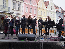 Díky MKS Domažlice měly studentky pěveckého sboru „PéeMPé“ možnost zazpívat svůj vánoční program v rámci vánočních trhů na domažlickém náměstí před radnicí. Ve středu 19. prosince 2018 se představily u rozsvíceného stromečku všem, kteří se zastavili, aby si navodili vánoční náladu. Podle reakcí obecenstva se vystoupení našich zpěvaček velmi líbilo. Všem členkám sboru děkujeme a těšíme se na jejich nový repertoár. |